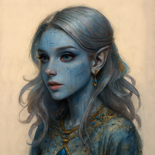 Die Stimme hinter all dem. Mal sichtbar, mal zurückgezogen, aber immer schöpferisch verbunden mit den Syntilians und den Kleinen Kreaturen. Sie spinnt Fäden, denkt in Formen, atmet zwischen Welten.